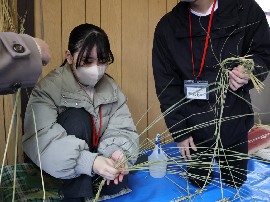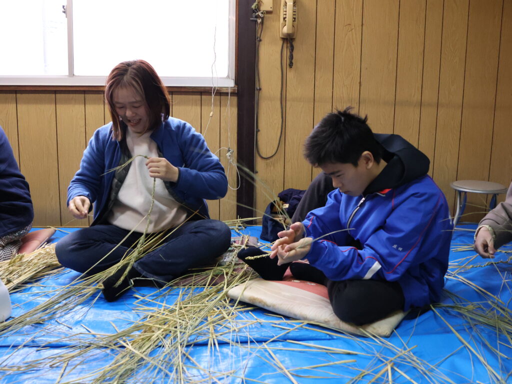 藁をなってしめ縄を作っていくのですが、なう作業が難しく、1本作るだけでもかなり時間がかかってしまいました… 私はなかなかうまく作ることができなかったのですが、「上手にできなくても自分自身が一生懸命作ったしめ縄を飾ることが大切」というありがたいお言葉をいただきました!