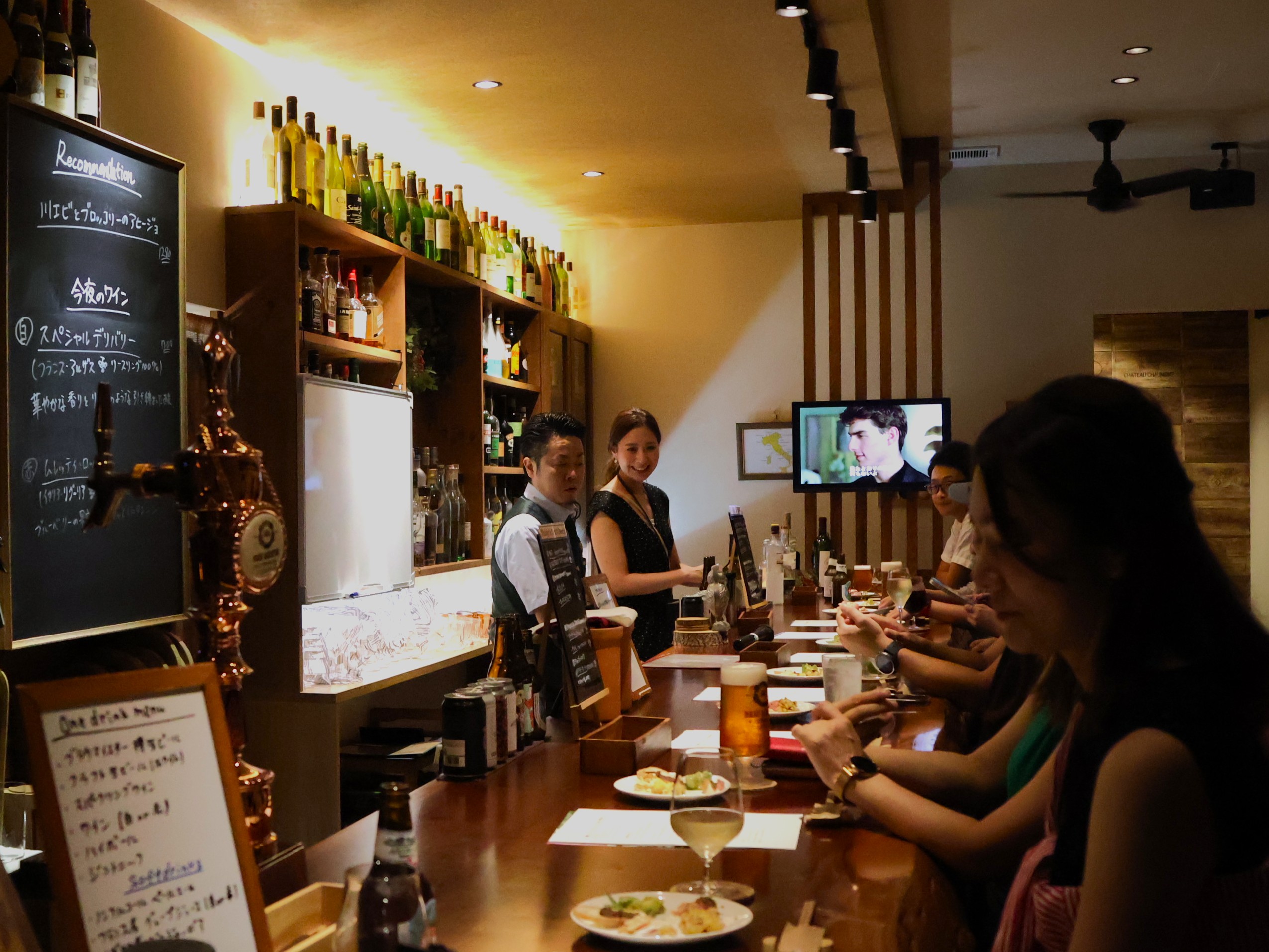 今回ワインやクラフトビール、ワイン用のぶどうをつかったジュースなど、お酒好きにもノンアル派も楽しめる飲み物をご用意いただきました。乾杯のあとで、会場となったWINE & BAR CHOUETTE オーナーソムリエの茂木龍児さんから「佐野のナイトカルチャーとBARのたしなみ方」についてお話いただきました。