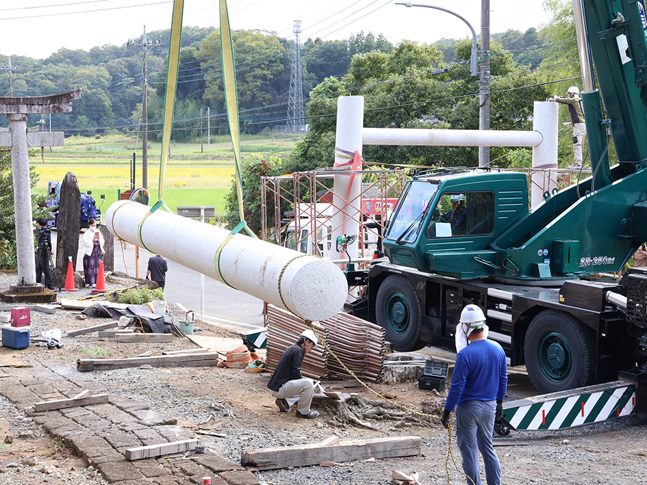 2023年にトラックが追突して崩壊してしまっていた富士側一の鳥居が再建されました。崩壊した唐澤山神社一の鳥居は石造りで、元々は昭和2年に犬伏小学校西交差点の北側に建てられていたものだそうです。きっとそれより古い時代の創建期は、木製だったのでしょうね。その交差点は、東西の道筋が例幣使街道で、南北の道筋は唐沢山城へ向かう主要道でした。その中世の道筋が、唐澤山神社への参道となっていったのでしょう。その後、そこにあった鳥居は東の交差点北側に移され、さらに露垂根神社の脇、つまり現在の場所に移されたとのことです。鳥居も交通事情や道路整備により転居を余儀なくされてしまうのですね。