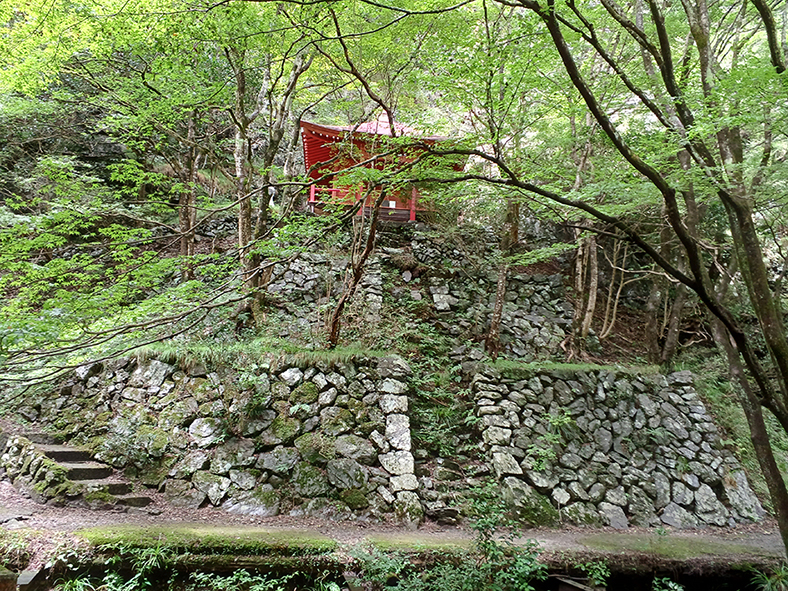 新緑や紅葉を愛でに、奥佐野の蓬莱山までお出かけになる方も多いのではないでしょうか。神社社殿は老朽化が進み、何年か前に建て替えられ少しコンパクトになりました。澄んだ空気に惹かれ時々野上の奥へ行ったついでに必ず立ち寄るのが、川を挟んで対岸に建つ観音堂です。急斜な崖を背に建つ観音堂はとても風情があります。そして、それをさらに引き立てているのが、3段の石垣とその中央に設置された本堂に上る急な石段です。地元の方々によって大切に守られている観音堂と石垣、これからもぜひ残していってほしい佐野の貴重な歴史文化遺産だと思います。